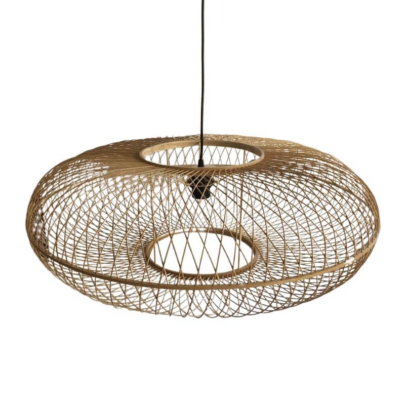 De Bamboe hanglamp Lina is een echte blikvanger. Deze lamp heeft een uniek model. Deze lamp is D70xH23 cm. We bieden ook nog een kleinere variant aan hiervan, bekijk hier de bamboe hanglamp Lina. Je kan de lampen samen leuk combineren, maar je kan ook de hanglamp Lina echt als eyecatcher gebruiken.