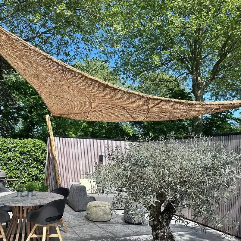 Stylingtips: Dit schaduwdoek past goed bij een bohemian of Ibiza-stijl buitenruimte. Combineer het met houten meubels, zachte kussens en groene planten voor een gezellige sfeer. Hang er lantaarns of rieten manden bij om het helemaal af te maken. Het natuurlijke materiaal zorgt voor een warme en uitnodigende uitstraling.