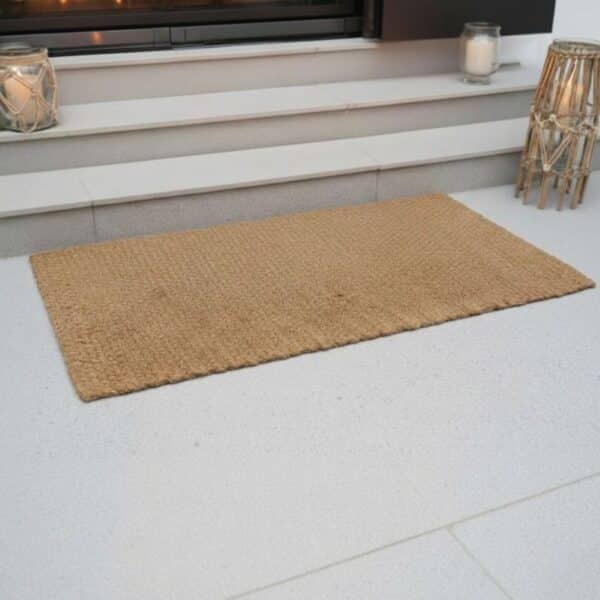 Dit is een vloerkleed dat een warme en natuurlijke sfeer in huis, overkapping of tuin brengt. Het kokos vloerkleed wordt vaak buiten of onder overkappingen gebruikt. Het vloerkleed wordt niet vaak binnen gebruikt, omdat het kokosvezel af en toe een beetje los kan laten wat voor binnen niet erg aangenaam is. Voor buiten maakt dit loslaten van een beetje kokosvezel vaak niet uit.