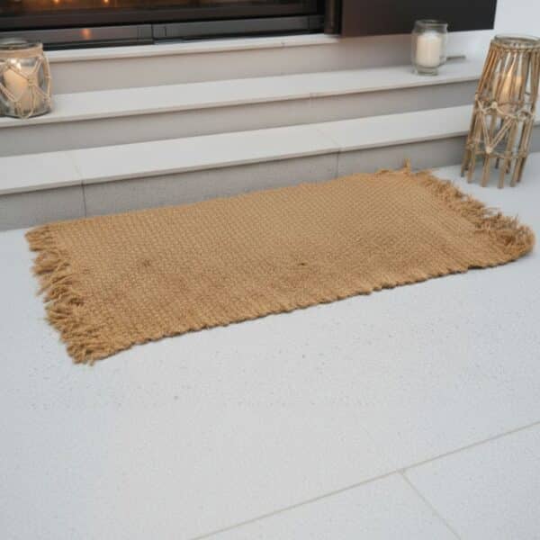 Hierbij ons vloerkleed van kokos van 80×150 cm. Een vloerkleed dat een warme en natuurlijke sfeer in huis brengt. Het kokos vloerkleed wordt vaak buiten of onder overkappingen gebruikt. Het vloerkleed wordt niet vaak binnen gebruikt, omdat het kokosvezel af en toe een beetje los kan laten wat voor binnen niet erg aangenaam is. Voor buiten maakt dit loslaten van een beetje kokosvezel vaak niet uit.