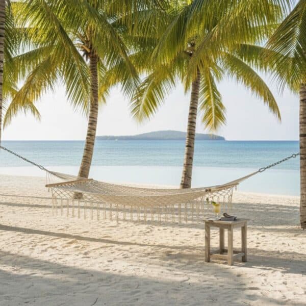 Stylingtips: Deze hangmat past goed bij een bohemian of Ibiza-stijl buitenruimte. Combineer het met houten meubels, zachte kussens en groene planten voor een gezellige sfeer. Hang er lantaarns of rieten manden bij om het helemaal af te maken. Het materiaal zorgt voor een warme en uitnodigende uitstraling.