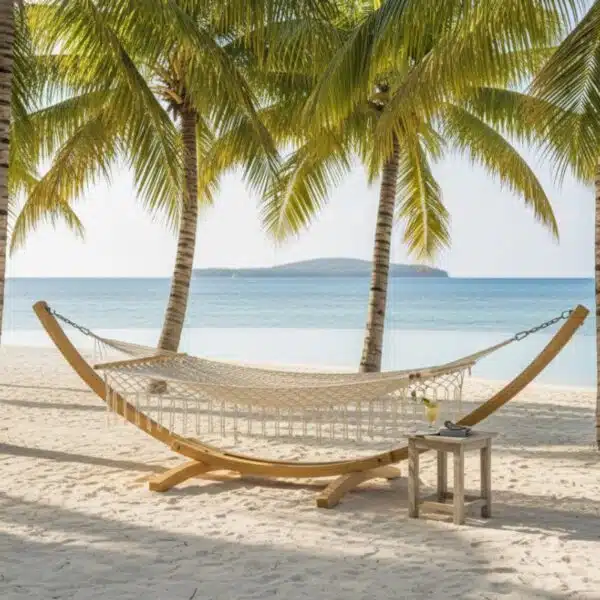 Onze hangmatten zijn een prachtige toevoeging aan tuin of overkapping. Je kan de hangmatten aan eigen ophangpunten ophangen maar ook in dit standaard.