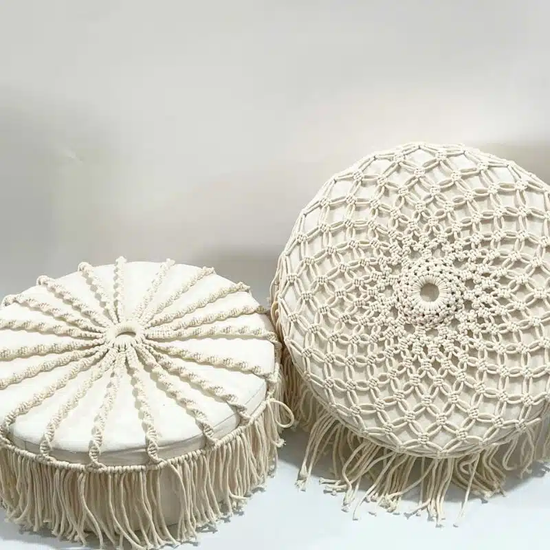 Macramé poef D40x15 cm – set 2 poefjes – 4shine