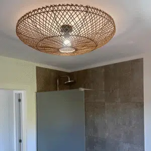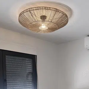 Woonkamer: Hang een rotan plafondlamp centraal in je woonkamer om een gezellige en ontspannen sfeer te creëren. Combineer met houten meubels en zachte, neutrale tinten voor een harmonieuze uitstraling.