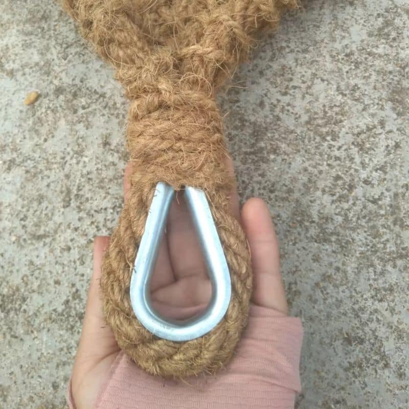 Materiaal: Dit schaduwdoek is gemaakt van duurzame kokosvezels, een stevig en ademend materiaal dat zorgt voor een warme, natuurlijke uitstraling. De randen van het doek zijn versterkt en voorzien van metalen ringen, zodat je het gemakkelijk kunt ophangen en stevig kunt bevestigen.