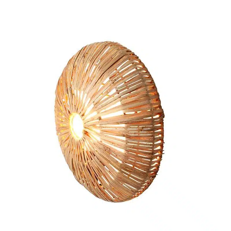 Wanneer je de Jairo wandlamp aanzet, verspreidt hij een warm en zacht licht dat een knusse sfeer in de kamer creëert. De textuur van het rotan zorgt voor een mooi spel van licht en schaduw op de muur. Deze lamp is perfect voor de woonkamer, slaapkamer, hal of een gezellige werkplek.