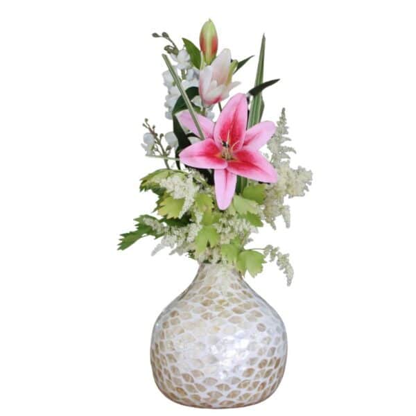 Deze vaas Lilly is gemaakt van Bamboe en capiz.