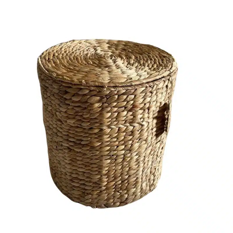Waterhyacint (ook wel Eichhornia crassipes) is een snelgroeiende waterplant die oorspronkelijk uit Zuid-Amerika komt, maar tegenwoordig in veel tropische gebieden voorkomt. Hoewel de plant in het wild vaak als een probleem wordt gezien, omdat hij waterwegen kan verstoppen, is hij tegelijkertijd een duurzaam en milieuvriendelijk materiaal geworden voor handwerk en interieurproducten, zoals manden, poefjes en vloerkleden.