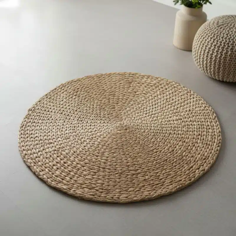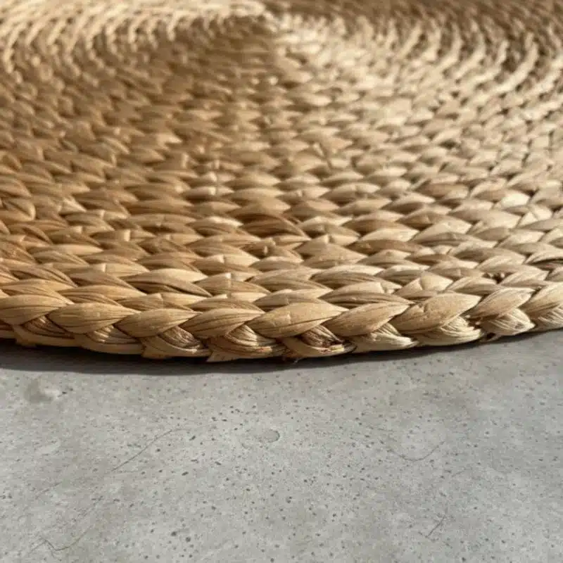 Hierbij ons waterhyacint vloerkleed van D150 cm. Een vloerkleed die een warm en natuurlijke sfeer afgeeft. Kan in huis en onder een overkapping (zolang daar geen vocht zit).