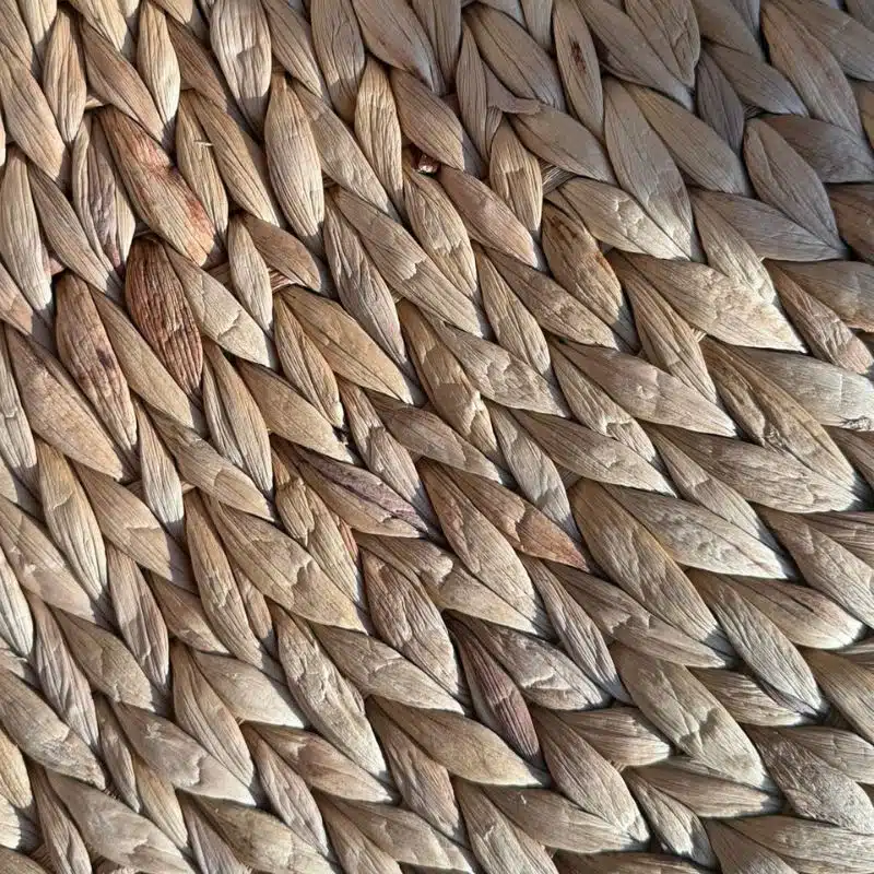 Waterhyacint (ook wel Eichhornia crassipes) is een snelgroeiende waterplant die oorspronkelijk uit Zuid-Amerika komt, maar tegenwoordig in veel tropische gebieden voorkomt. Hoewel de plant in het wild vaak als een probleem wordt gezien, omdat hij waterwegen kan verstoppen, is hij tegelijkertijd een duurzaam en milieuvriendelijk materiaal geworden voor handwerk en interieurproducten, zoals manden, meubels en vloerkleden.