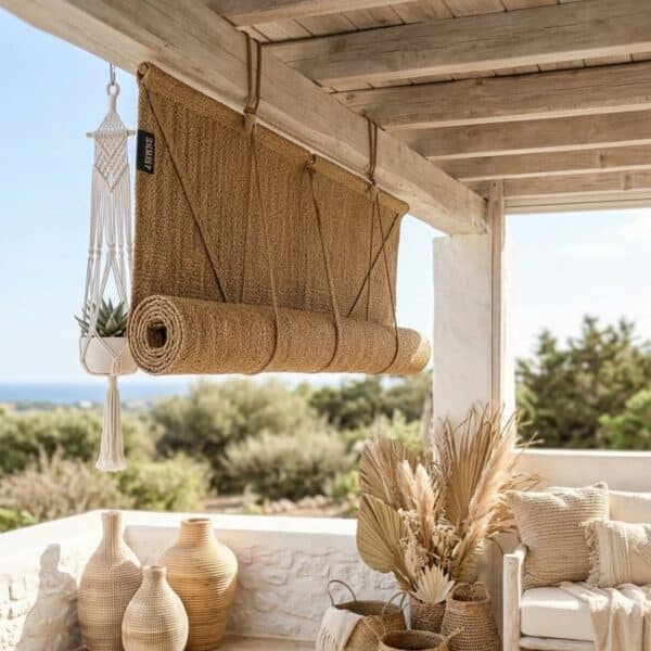 Onze zeegras gordijnen zijn gemaakt van puur natuurlijke vezels en brengen direct warmte en karakter onder je overkapping. Het robuuste, handgeweven materiaal geeft een rustieke en tegelijkertijd luxe uitstraling. Perfect voor wie houdt van een natuurlijke, bohemian of landelijke stijl.