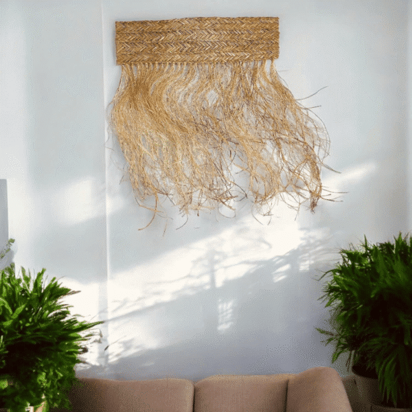 Een zeegras hanger als muurdecoratie is de perfecte manier om een natuurlijke, bohemian sfeer in je interieur te brengen. Gemaakt van duurzaam zeegras, straalt deze hanger een warme en rustgevende vibe uit, ideaal voor liefhebbers van een organische en aardse stijl. Door de prachtige textuur en unieke vorm voegt het direct karakter toe aan elke muur, of het nu in de woonkamer, hal of slaapkamer is.