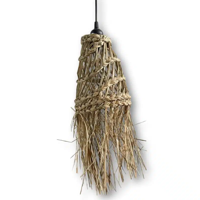 Het lichtsnoer is voorzien van 15 handgevlochten lampenkappen van zeegras. Zeegras is een natuurlijk en duurzaam materiaal, geliefd om zijn sterke vezels en warme, aardse uitstraling. Door de open gevlochten structuur schijnt het licht zacht naar buiten, wat zorgt voor een warme en diffuse gloed in plaats van fel licht.