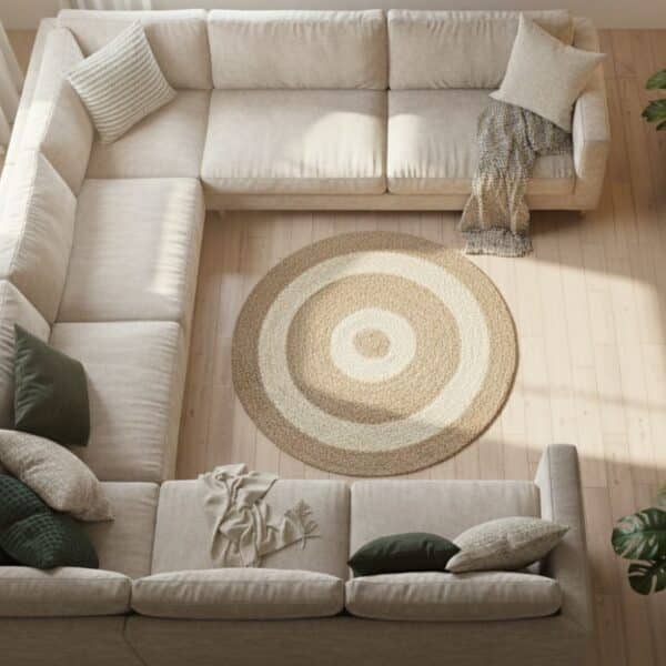 Hierbij ons vloerkleed van zeegras + palm van D150 cm. Een vloerkleed dat een warme en natuurlijke sfeer in huis brengt. Kan binnen en onder een overkapping gebruikt worden (mits er geen vocht aanwezig is).