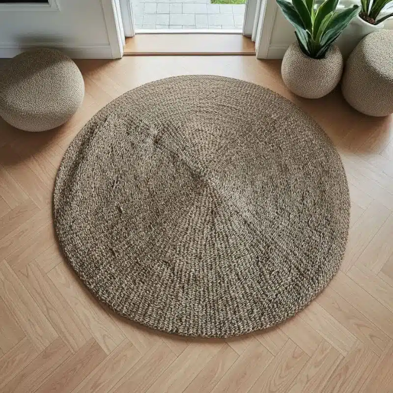 Hierbij ons vloerkleed van zeegras van D120 cm. Een vloerkleed dat een warme en natuurlijke sfeer in huis brengt. Kan binnen en onder een overkapping gebruikt worden (mits er geen vocht aanwezig is).